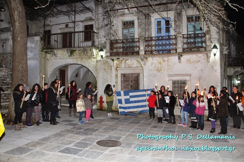 μέσα απ τις πλακόστρωτες ρύμνες, τ Απεράθου τραγούδησαν πατριωτικά τραγούδια.