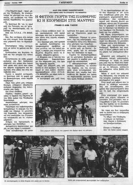 | Η Δημοσίευση στην Εφημερίδα 'Τ Απεράθου" τον Ιούνη του 1984 |